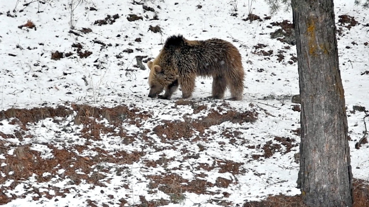 Kars’ın Sarıkamış bölgesindeki muhteşem sarıçam ormanları, bahar mevsiminin gelişiyle birlikte yeniden hayat bulmaya başladı. Bu bölge, dünyada yalnızca göç eden bozayı popülasyonuna ev sahipliği yapmasıyla dikkat çekiyor. Kış uykusundan uyanan bir bozayı, gün ışığında yiyecek arayışıyla dikkatleri üzerine çekti. Yağbasan köyü yakınlarındaki orman sınırlarından dışarı çıkan ayı, bir süre demir yolu hattı boyunca koşarak çayırlarda besin arayışına devam etti. Doğal ortamında serbestçe hareket eden bu yaban dostu, ağaçlara tırmanarak çevresini inceledikten sonra derin ormanlık alana doğru ilerleyerek izini kaybetti. Kış uykusu sonrası yiyecek bulmak için yerleşim alanlarına yakın bölgelere kadar inen bozayılar, bölgedeki yaban hayatının canlılığını bir kez daha gözler önüne serdi. Bu görüntüler, doğanın döngüsünü ve yaban hayatının zenginliğini gözler önüne seriyor.